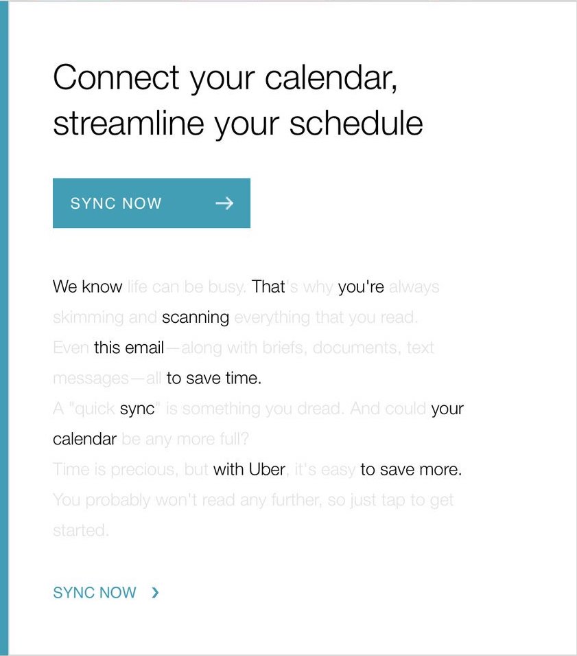 Like all of Uber’s brand-related communications, the email was streamlined, clever, and well designed. These qualities help identify their brand, and therefore make Uber’s marketing efforts all the more successful.