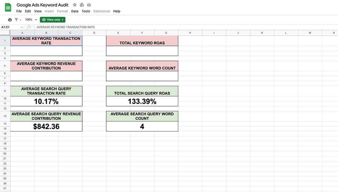 Use for: Efficiently auditing your PPC keywords & search queries to identify top performers based on ROAS.