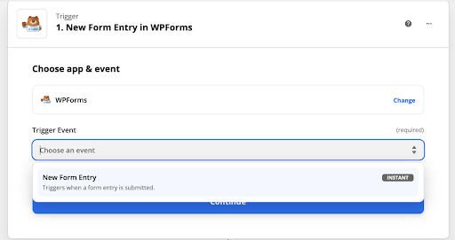 Step 1: Select WPForms as your trigger