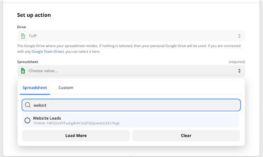 Step 10: Choose the Google Sheet that you want to send the submission data to.