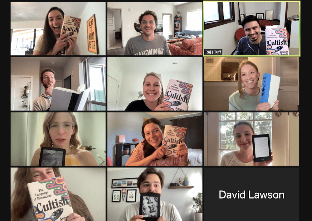 And, of course, the ol’ reliable. We do continue to hold monthly all-company happy hours. Because our team has grown significantly since we first started them, we’ll typically devise a game or activity that splits us up randomly into breakout rooms of 4-6 people so that actual conversations can happen.