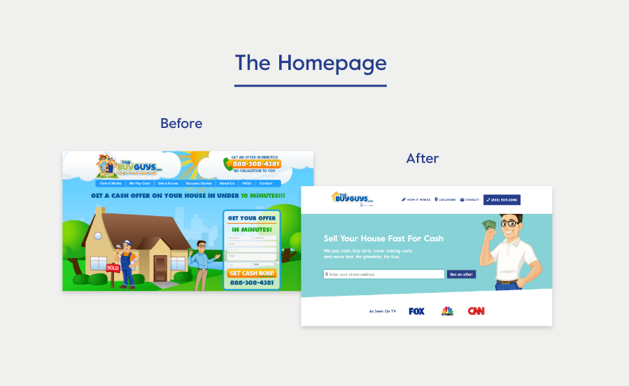 Previously, The Buy Guys allocated the majority of their marketing time and effort to print mail – a successful channel in the home buying industry. But as The Buy Guys matured and more people were spending time researching home selling and the home selling process online, it was critical they improve their online experience. Working with their CEO and COO in January, we decided to work on a digital marketing strategy that would focus on increasing leads and sales.